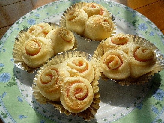 最近お気に入りの卵入りリッチ生地で「クルクル◎三つ子のハムロール」パンを焼きました♪【成形方法】1. パン生地を直径10cmの円形に伸ばし、ハムを乗せてクルクル丸める 2. スケッパーで3等分に切り、アルミカップに並べる3. 2次発酵後霧吹きで水をかけ、粉チーズを散らす 180度のオーブンで15分焼いたら出来上がりです ←パン作りのブログが大集合♪ ←お料理ブログが大集合♪↑↑ 応援クリックお願いします↑↑ 今日は、楽天とラベルから秋のお勧め旅行のご紹介です秋と言えば紅葉ですよねたまには贅沢な旅でセレブ気分にいつでもどこでも一緒にねdesign by JOKER