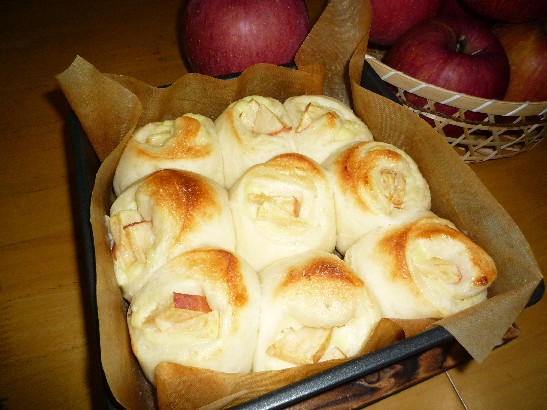 林檎を沢山頂いたので、シナモンロール風の「アップルカスタードロール」を作りました♪【成形方法】 1. 1次発酵が終わったパン生地を3等分し、楕円に伸ばす2. 林檎とカスタードクリームを生地でクルクル巻き、3等分に切る3. スクエア型に縦にして並べ、2次発酵後グラニュー糖を振り掛ける 190度のオーブンで15分焼いたら出来上がりです♪ ←パン作りのブログが大集合♪ ←お料理ブログが大集合♪↑↑ 応援クリックお願いします↑↑ 夜作ったので夜写真を撮ったのですが、難しいですね~。フラッシュのところは白くなっちゃうし、周りは暗いし・・・。どうやったら上手に撮れるのかしら誰か教えて下さい~ 今日は、可愛いキッチン雑貨のご紹介です【かご1000点即日発送】帆布とレースのかわいい (*^。^*)楕円バスケット(43cm) ★0113-point★ 【送料無料・翌日出荷】籐家具:籐3段バスケット F504H 【広告掲載店舗☆0108モダンリビング】大人気!パンやケーキー作りに大活躍♪ケーキークーラー/Ldesign by JOKER