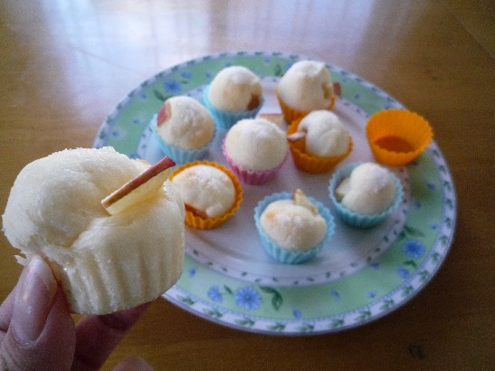2口サイズの小さな「プチ林檎パン」を焼きました♪」【成形方法】1. 1次発酵後のパン生地を小さく分け、クシ切りにした林檎を入れて丸め、シリコンカップに入れて2次発酵 2. 2次発酵後、霧吹きで水をかけ、コーヒー用のスティック砂糖をふりかけて180度のオーブンで15分焼く 100均で買ったお弁当用の小さいシリコンカップにあわせて、小さいパンを沢山作りました ←パン作りのブログが大集合♪ ←お料理ブログが大集合♪↑↑ 応援クリックお願いします↑↑ 今日は、使える100円グッズをご紹介しますお子様のお弁当用に!のりパッチン にっこりセーターの形くずれと伸びを防止する!セーター用ハンガー2種類のブラシで使い分ける!目地洗いブラシdesign by JOKER