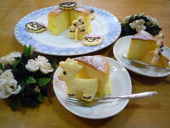 チーズスフレのクリスマスケーキを作りました♪ 【レシピ 15cmの丸型1個 & 小さいカップ2個分】卵2個、薄力粉40g、コーンスターチ10g、クリームチーズ100g、砂糖60g、生クリーム50ml、牛乳50ml、レモン汁少々 下準備 : クリームチーズを室温に戻す、卵黄と卵白に分ける、粉類を振るう、型にバター(分量外)を塗りクッキングシートを敷く、カップにはバターを塗る 1. 卵黄、クリームチーズ、砂糖半量、生クリーム、牛乳を良く混ぜる2. 小麦粉&コーンスターチを振り入れ、レモン汁を加えて良く混ぜる(オーブンを160℃で予熱開始)3. 卵白に砂糖の残りを加えしっかりしたメレンゲを作る4. メレンゲをケーキ生地に2回に分けて加え、サックリ混ぜ、型に入れる5. 鉄板にお湯をはった160℃のオーブンで40分間、蒸し焼きにするカップのチーズスフレは、出来立てフワフワを味見してみて 絶品です!6. 型のまま冷まし、ラップをして冷蔵庫で一晩寝かせる7. 型から外し、デコレーションする 家の息子は生クリームがちょっと苦手なので、デコレーションは生クリームを使わずに粉砂糖&クッキーを飾ってみました クッキーのレシピは、又明日 ← 素敵なブログが大集合 ←お役に立てたらクリック願います♪ 今年のクリスマスは息子がスキーに出かけてしまうんですなので、一足お先にお家クリスマスでした 保存はガラスボウルをカパッとかぶせて冷蔵庫へ 今日は、憧れのアフタヌーンティープレートのご紹介ですファイヤーキング・ミルクホワイトゴールドリム・アフタヌーンティー3段プレートVERY GOODROY KIRKHAM(ロイカーカム) ルドゥーテ・ローズ 2段ケーキスタンドジュリエッタ ケーキスタンドdesign by JOKER