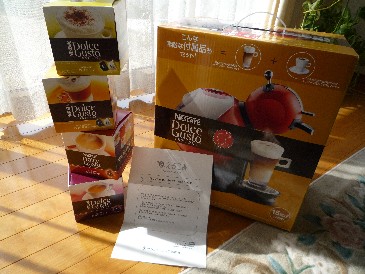 届きました!「ネスカフェ ドルチェ グスト」 「えるこみ」さんのモニター当選で、最初はモニター期間終了後、本体を返却する予定だったのですが、そのまま頂ける事になりましたーいや~、コレ、凄いです!お店みたいです!カッコイイし、美味しいし、簡単だし! 最初の1杯目は「ラッテ マキアート」を飲んでみましたまるでお店で飲むコーヒーの味ですほんのり甘くて、美味しかったわ~ 作り方は簡単で、本体にお水とコーヒーのカプセルをセットして、レバーを傾けるだけお手入れもコーヒーメーカーと同じ感じで、簡単です。大きさは、コーヒーメーカーより1回り位大きいかなあ。 2杯目は、デザートと一緒に飲みたかったので「カフェ ルンゴ」を淹れてみました「カフェ ルンゴ」は16杯分で798円、「ラッテ マキアート」は8杯分で798円です。お家で飲むにしてはちょっと高いかなあでも、お店の味だし、お店で飲むよりかなりお安いので、コーヒー好きの私には嬉しいマシーンですプリンと一緒に頂きましたーあぁ、幸せ~ ← 素敵なブログが大集合 ←色んなレシピが参考になります♪↑↑ 応援クリックお願いします↑↑ 今日は、楽天最安値の「ドルチェ グスト」本体とコーヒーカプセルのご紹介です ネスレ ネスカフェ ドルチェ グスト MD9741-RD レッド MD9741RD 【090316_モバイル限定】【送...【当店ポイント2倍】ネスレ ネスカフェ ドルチェグスト専用カプセルラッテ マキアート【税込】 ...【当店ポイント2倍】ネスレ ネスカフェ ドルチェグスト専用カプセルカプチーノ【税込】 CAP1600...design by JOKER *えるこみ様、メールに記載されていたタグをブログに貼ることができませんでした