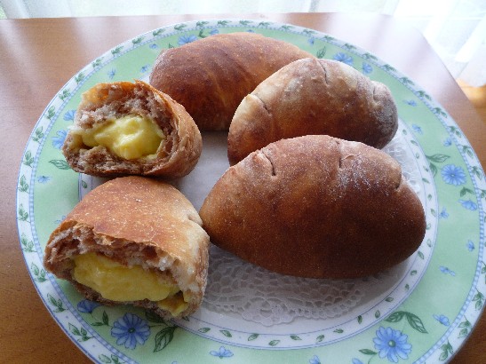 ホームベーカリーでお手軽に作ったチョコマーブル生地に、これまた電子レンジで簡単に作ったカスタードクリームを入れて「マーブルクリームパン」を焼きました♪【チョコマーブル生地】ホームベーカリーのパン生地コースで出来上がったパン生地に、粉末ココア(大さじ山盛り1~2杯)を加えて、更に3分~5分ホームベーカリーを動かしたら出来上がりです 【カスタードクリーム】作り方 → 過去の記事 なんだかラグビーボールの様な形になっちゃったけど美味しく出来たのでOKです ←パン作りのブログが大集合♪ ←お料理ブログが大集合♪↑↑ 応援クリックお願いします↑↑ 今日は、私が最近ハマってる楽天オークションのご紹介です(今月那須旅行に行くので、そっち方面のレジャー施設のチケットとか買ってるの売ってるのは、子供の小さくなった服とか色々近所のリサイクルショップに持って行くより良いお小遣いになるし、喜んでもらえるし、オークション楽しいですよ)送料無料のモノばかりご紹介♪1円スタートだから、思わぬ安値で買えちゃうかも?!枚数が必要な子供服はオークションで賢く買っちゃおう♪design by JOKER