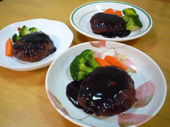 我が家はハンバーグを作るのは、夫の仕事なの出来上がりがコチラ「父担当!煮込みハンバーグ」です。今日のハンバーグは、レシピブログさんのモニターで当たったを使ってもらいました 【レシピ・3人分】合いびき肉600g、玉ねぎ2個、人参1/2本、卵1個、パン粉適量、塩コショウ・ナツメグ適量 1. 玉ねぎはみじん切りにし、あめ色になるまで炒める2. 1の玉ねぎとみじん切りにした人参、挽肉、卵、パン粉、塩コショウ、ナツメグと合わせてよく捏ねる。3. フライパンにハンバーグソースと水を1対1の割合で入れ、ハンバーグを入れて中火で5分、ひっくり返して5分煮込んだら出来上がり♪ 付け合せに人参とブロッコリーを添えて 夫の作るハンバーグは、肉!って感じでとっても美味しいんです。捏ね方が上手いのかしら モニターで使った煮込みハンバーグソース(照り焼き味)はちょっと甘めだったけど、なかなか美味しかったですよ。 ← 素敵なブログが大集合 ←お役に立てたらクリック願います♪↑↑ 応援クリックお願いします↑↑ 今日は、ボーナスで買いたいマッサージグッズのご紹介です【1個でも送料・代引き手数料無料】スライブ メディカルブーツ 10P21Dec09ポイントでこりをとらえる、チョップでたたいてほぐす。オムロンマッサージャHM-163【凝った部分にぴったりフィット♪防水加工のスケルトンマッサージスティック】スケルトンマッ...design by JOKER