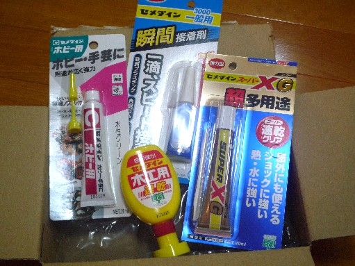 モラタメさんでセメダイン「つくる」シリーズ4商品セット実売価格:1,575円(税込) を 送料関係費:735円(税込)で試しました 前に何かのテレビで見た、「木工用ボンドを自転車の錆びにぬって剥がすと錆が綺麗に剥がれる」 ってのを試してみたくて木工用ボンド以外のも色々使えそうなので、買ってみたのです。 で、早速自転車の錆に試してみたのですが・・・・。なんと、全然ダメでしたまず、固まったボンドを剥がすのが凄く大変だし、錆は気持ち程度しか取れないし、テレビではあんなに綺麗に剥がれてたのに~ガッカリですま、ボンドは本来の使い方で使いましょう。息子はたまに大物を製作したりするので、その時にセメダインセットをプレゼントしようと思ってます ←ブログ村には沢山のブログが大集合だよ♪ (応援ポチお願いします) 今日は、使えるマウスパットのご紹介です(左のローマ字変換表マウスパットは、先日息子にプレゼントしました) [ELECOM(エレコム)] ローマ字変換表がマウスパットに!ローマ字変換対応マウスパッド MP-067LBK 5250円以上で【送料無料】[Excel用ショートカットキー表]入力支援 マウスパッド エレコムMP-103BU 5250円以上で【送料無料】[Word用ショートカットキー表]入力支援 マウスパッド エレコムMP-104BUdesign by JOKER