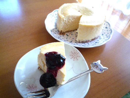 先日作ったチーズケーキです 【レシピ ・ 12cm型1台分】 クリームチーズ200g、砂糖大さじ5、卵2個、薄力粉大さじ3、プレーンヨーグルト100g、レモン汁大さじ1、バター10g 1. 全ての材料をフードプロセッサーに入れ、滑らかになるまで混ぜたら型に流し入れ、180℃に予熱したオーブンで40分焼く2. 粗熱がとれたら冷蔵庫で冷やし、切り分けてブルーベリージャムをトッピングしたら、出来上がり(土台は、以前余って冷凍しておいたクッキー生地を使いました) しっとりどっしり濃厚なチーズケーキなので、ちょっぴり食べれば十分ですなので、小さめの直径12cm型がピッタリなの 型が小さくて生地が少し余ったら、耐熱カップに入れて一緒に焼くと、フワフワスフレチーズケーキになりますよ ← 素敵なブログが大集合 ←色んなレシピが参考になります♪↑↑ 応援クリックお願いします↑↑ 今日は、お家用にピッタリサイズのケーキ型のご紹介です フッ素加工の製菓用品。富士琺瑯のベイクウェア【2000円以上送料無料】 富士ホーローベイクウェ...価格:798円(税込、送料別) 《48%OFF!》 貝印 アルミシフォンケーキ型15cm(底取)今ならピックアップナイフのおまけ付き!価格:1,747円(税込、送料別) バレンタインデーに ベイクウェアー 『エンゼルケーキ型 15cm 』 フッ素樹脂加工価格:1,174円(税込、送料別)design by JOKER