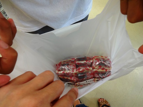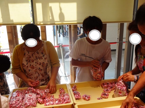 袋が結べたら、レジにいって店員さんの厳しい(笑)チェックを受けます。