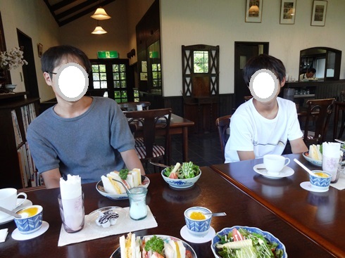 私はハンバーグで夫と息子はパスタを食べました(^_-)