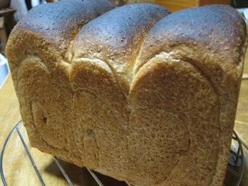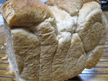 こんにちは!マツダです先週末、ウェブデザイナーのグラハムブレッドフラワー100%のパンです。最近のホームベーカリーは、ママパンで現在販売中のスーパーファインハードくらいでしか簡単に上手に作れませんから。計量するだけでOKのホームベーカリーだったら、とってもラクちんなので、かえってイイのかもしれません。ちなみにこのパンは、見た目の通り素朴な味わい。グラハムブレッドフラワー100%ということで、これはHBで作ったとは言え、完全なグラハムブレッド。なので、チーズが恋しくなる味わいでした…きっと、薄くスライスしてからラスクにして、ガーリックトーストを作っても美味しいハズ。また作ってきてもらって、今度はアレンジを楽しんでみたいと思いますッ
