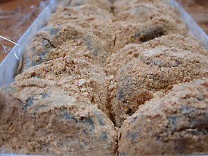 こんにちは!マツダですブログが大変ご無沙汰になってしまい、本当に申し訳ありませんでしたm(_ _)m現在、大変たくさんのご注文を頂戴している関係で、普段お電話でのご対応を中心にさせていただいているマツダをはじめ、ほぼ全てのスタッフで出荷作業に当たらせていただいている状態です。お急ぎの方には本当に申し訳ございませんが、できるだけ早くお手元にお届けできるように努めておりますので、何卒ご理解いただければ幸いです。さて、最近マツダ家では、もち米をつかったスイーツがたびたび食後に出てきます。というのも、マツダ母が、最近おもち作りに目覚めてしまったから!!!!なぜ目覚めたのかはわかりませんが、ある日突然「よもぎ粉と、あんこを買ってきて!」と言われ、家に帰ってから渡すと、こんな風になって出てきたんです。実はここ、滋賀県は、良質な羽二重もち米が多く栽培されているんです。なので、滋賀のスーパーには、羽二重もち米がかなり流通しています。(と、思っています)もともと、羽二重もち自体が、お隣、福井県のお菓子なので、そういった地理的なこともあるんでしょうね。そんな羽二重もち米で作った、つきたての草もち。おもちなのに、ふんわりとした食感で、ほのかに甘く、よもぎの香りも華やかでと~っても美味しかったのですが、「やわらかすぎっ!!!」実は、マツダ家には大きな蒸し器がないので、もち米をちょうどいい具合に蒸すのが、ちょっと難しいみたいなんです。。。確かに、今まで“蒸す”といえば、プリンか肉まんくらいだったので、鍋にちょっと工夫をするくらいで事足りていたんですね。せっかくの羽二重もち米も、ちゃんと蒸せなくては意味がなぁぁぁあいただ、マツダ母は、なんとか今の設備のままでチャレンジしたいようで、最近ほぼ毎日、羽二重もち米を蒸しています。いざ、おもちをついてみると、どろどろになってしまうこともあるので、そんなものは、バットにすべて流し込んで、のし餅にしています。それよりは固めに蒸しあがったけど、やっぱりつくにはちょっと。。。という仕上がりのものは、おはぎになったりもします。そんなワケで、毎年、お正月のために既に出来上がっているおもちをたくさん買っていますが、今年は手作りのおもちで済みそうですちなみに今日のマツダの朝ご飯は、青のりをまぶしたおはぎでした失敗作とは言え、つきたてのおもちですから、これはこれで美味しくって、マツダは大歓迎!!これも、手作りのイイところですよね~。密かに、「成功しなくてもイイよ♪」と思っているマツダでしたッ。
