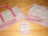 やっと出来上がりました。ブログの更新もそこそこに長女&次男にジャマされながらちょこちょこ作業場にむかいやっと長女の入園グッズ一通り完成です。絵本袋は長男のときはキルティング生地で作ったので裏地の必要がなく、今回もまったく予定にいれていなかったのですが、綿70%×麻30%の生地ではかなり頼りなく・・・(~_~;)もう一度バラしてから裏地をつけなおしたのでした。裏地のつけ方に関してはまったくの無知???でしたのでコチラのサイト(写真入で解りやすい!)とコチラにすっごく助けてもらいました。あと三角巾(バブーシュカ風)なのですが、つけたときに後ろで結ぶのは長女にはムリっぽいので、後ろ部分はカットして幅広ゴムでつなぎ子供でもターバンのようにカンタンにつけれるように工夫しました。あと、今回ぜひやってみたかった★抜きキャンバス★でのお名前刺繍。クロスステッチの図案(チャートといいます)を利用しますがマス目がない生地でもキットを使うとなんにでも刺繍することができます。ネットでもフリーチャートを公開されている方がいらっしゃいますのでチャレンジされてみたい方はご参考ください。ひらがなのフリーチャート → The mint housu HPアルファベットのフリーチャート → LUMIERE403 HPコチラのサイトにはいろんな方が作られた図案が(クロスステッチ用ですが、抜きキャンバスにも応用できます)たくさん紹介されています。ワンポイントにもつかえるような図案もたくさんありますので、お子様の入園、入学グッズに「わたしマーク」として刺繍してあげるのもとってもカワイイと思いますよ。さあ、次は長男の入学グッズです。一息ついているヒマはありません。 絵本バッグ&体操服入&連絡帳カバー エプロン&三角巾 お弁当入×2&ランチョマット×2 抜きキャンバスでのお名前刺繍に初挑戦!designed BY まよ(^-^*)オススメの生地屋さんです 子供が喜ぶキャラクター生地なら手芸のピロルナチュラルな風合いの生地そろってますfabric birdナチュラル系の材料、送料もメール便対応で安!生地と雑貨のお店 PERURU