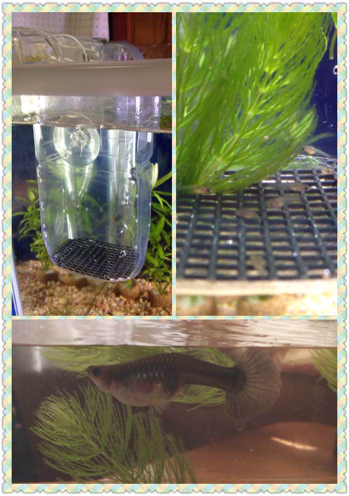 昨日のキイロっちに続いて、 今日は黒ボス♀が……(-"-;) もう、いちいち赤ちゃん救うのも 仕事が進まんからできんし、 サテライト使おうと思ったら、 Mは昨日産まれたグッピー赤ちゃんが、 Sはブルーメダカの赤ちゃんが使ってるし… でも、ちょうどいいことに 100均プラケがサテライトMの仕切り⁇に ジャストフィット〜‼︎ そこでゆーっくりと産仔してもらいました。 18匹産まれて、うち☆が2匹。 初産だったらこんなもんか〜ヽ(´▽`)/ だけど、今日産まれたこの子らの サテライトがない。 即席で、ペットボトルと鉢底ネット、水切り網と吸盤で飼育スペース確保しました‼︎ でも500mlのペットボトルじゃ小さいから、 今度2Lペットボトルで作り直そう。