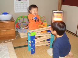 子供達は3つのボールを長男2つ、長女1つと上手にわけっこして