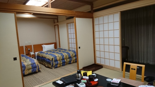 今日はブロ友のじぇりねこさんに誘ってもらって千葉県の船橋に出かけてきました。御朱印もゲットして、楽しい一日でした。その様子はまたあとでアップすることにして、今日は昨日の続き、犬吠埼と銚子の旅の様子をアップします。日の入り時に犬吠埼温泉のホテルにチェックインしました。ホテルの最寄り駅は犬吠、銚子から銚子電鉄で行きます。ただ、本数が少ないため待ち時間が長くなるので、今回は銚子駅からタクシーに乗りました。途中運転手さんが、銚子と紀州和歌山県の関係を熱く語ってくれたりして、面白かったです。ホテルの客室はこんな感じ。和洋室っていうことで予約したんだけど、ベッドの部屋は畳にカーペットを敷いてあるようでしたよ。ちょっと笑いました。日の入り時だったので夕日が海に沈むのが窓から見られるかと思ったのですが、建物自身が邪魔をして西の方角は見えず、空が薄紅に染まっているだけでした。夕飯までに1時間以上あったので、夫は歩き疲れたのかひと眠りすると言い、わたしは大浴場に。前にも書きましたが、こちらのホテルは屋上にある露天風呂から海が見えるということだったのに、耐震工事中とかで4階以上は立ち入り禁止になっていて、入れるのは地下1階の大浴場にある露天風呂だけ。地階と言っても高台にあるので海は見えるはずなのですが、屋外の駐車場から覗けないようにという配慮のため(?)めぐらされているフェンスのせいで海は全く見えず、ちょっとがっかり。でも、海水よりもっとしょっぱい感じの、熱めの温泉はすごく気持ちよくて、やや中途半端な気持ちで部屋に戻り夕食会場へ。夕食のお品書き、拡大して読んでくださいね。真ん中が先付け。三が日のためかお品書きとは違って、田作りと栗きんとんがついていました。絶品のおつくりです。全部が外れナシのおいしさでした。特に、マグロはわたしの好きな赤身で、これと脂がのってるのにぷりぷりの食感の勘八が最高でした。手前の右は、銚子名物の釣りのキンメダイ。甘くて上品な味でした。煮物。素材の味が生きていて美味しかったけれど、おさしみに負けましたね。お気の毒。焼き物は寒ブリ。これも脂ノリノリですごくおいしい。牛肉の陶板焼き。むしろお野菜が美味しかったです。お鍋はチーズ鍋でした。お野菜もたっぷりで思ったよりあっさりです。酢の物はエビやカニなどをミルフィーユ仕立てにしてやや甘めのお酢で味付けしたもの。わたしはお刺身の次にこれが美味しかったです。ご飯はお赤飯とつみれ汁。お赤飯はもち米でなくうるちだったようで、夫は今いち気に入らない様子。つみれ汁はすまし仕立てでしたが、臭みも全くなくてすごくおいしかったです。ご飯を食べたらお腹がいっぱいになってしまって、デザートを断ったら、お部屋にお持ちになってあとで召し上がってくださいと、こんな風にお皿に盛りつけて持って来てくれました。食事から部屋に戻って、もう真っ暗でしたので、この時間なら露天風呂で流れ星でも見えないかとまたお風呂に行きました。残念ながら流れ星は見えませんでしたが、ほぼ満月でほぼスーパームーンの月が寝湯からよく見えましたので、しばらくお月様と満天の星、潮騒の音を楽しんで部屋に戻り、デザートを戴きました。おなかがまたもやパンパンになり、昼間の強行軍の疲れも出て、早々に寝てしまいました。おかげで翌朝は5時半に目が覚めました。日の出は6時半過ぎとのことで、まだ外も真っ暗でした。しばらく2度寝を楽しみ、6時過ぎ窓の外を見ると、夜が明け始めています。夜明け直前の露天風呂の雰囲気も知りたくて、飽きずに大浴場に向かいます。でも残念ながら、女性用の浴場は微妙に方向が違っているようです。日の出の方向を向いていても、フェンスのために、海からの日の出は見えないのですけど。というわけで、朝風呂は早々に切り上げ、部屋に戻りました。でも、空は明るくなっているのだけれど、海面近くは雲があって、部屋からも海から昇る太陽を見ることはできませんでした。日の出から30分以上たって、ようやく雲の上に太陽が顔を出しました。太陽が昇ったところで朝ご飯。朝はバイキングでしたが、お料理はどれもおいしく、量も種類もたっぷりでした。わたしも朝からこんなに食べてしまいました。この後は犬吠埼と銚子の観光です。続きはまた明日。