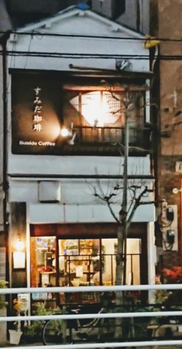 またまたご無沙汰でした。先週末の金曜日、土曜日とお出かけしてバタバタしていたら、なんだか疲れてしまって日曜日は一日全部で30分くらいしかなかったみたいな腑抜けな時間を過ごしてしまいました。(30分じゃあブログを更新できなかったという、そういうアホな言い訳をしているわけです。)金曜日のお出かけは少し早めに仕事場を出ることができ、前から行ってみたいと思っていたコーヒー屋さんにちょこっとですがお寄りできたので、今日はまずその話題です。お店の名は「すみだ珈琲」。墨田区錦糸町の蔵前通り沿いにあります。駅から遠くはありませんが、5分ほどは歩くでしょうか、蔵前通り沿い、オリナスの向かい、ちょうどニトリの前のあたりです。なんて言ってもあの辺りをご存じない方にはチンプンカンプンでしょうけど、まあ、わかりやすい場所にあるわけです。とはいえ、冬の5時はもうほぼ暗くなっていて、蔵前通りの反対側にお店を見つけた時はちょっとホッとしました。こんな古民家風の建物で、ガラスの引戸は何と切子ガラスでした。ガラガラと引戸を開けると、店内もレトロなたたずまいに、木張りの床。奥まで進んでカウンター席に着くと、カウンターンの上にこんなご挨拶が。そう、こちらでは、オリジナルの江戸切子のカップでコーヒーが戴けるそうなのです。注文したのは、今日のコーヒー。浅煎りのケニヤ産スペシャルティー珈琲で、少し酸味の勝った味だけれど、あとから甘みとコクが来るということでした。こちらのコーヒーはもちろんおいしいと評判なのですが、コーヒーを飲みたいのなら、ここまで歩いて来なくても、駅前の大きなビルに広い2号店が出来ています。そちらには何度か行っていますが、ちょっと離れたこちらの本店にはなかなか来られなくて、一度切子のカップでコーヒーを飲んでみたいと思っていたので、それを目当てに今日は来たのでした。今日のコーヒーは、こんなカップでの提供でした。写真ではわかりませんが、とっても飲みやすいカップでした。珈琲も、綺麗に澄んだ、浅煎りらしくとてもさわやかな味と香りでした。確かにマスターの仰ったように、あとから甘みとコクが来て。。。お代わりしたいくらいでした。駅前のパルコに入っている2号店は広いお店で、もちろんここと同じ豆を使っているのでコーヒーは美味しいですし、メニューも多彩です。でも、切子のカップで戴く珈琲はこちらの本店でしか味わえないので、お休みの日なんかは、入れなくてお店の前で待つこともあるそうです。今日はすんなりお席に着けてラッキーでしたが、この日はこの後に予定があり、気が急いたのであまりゆっくりはできませんでした。とりあえずお店の雰囲気を見られたのと、素敵なカップもコーヒーの味も確かめられたので、残念でしたが、コーヒー一杯だけでお店を出ました。また今度、ゆっくり来てみたいと思います。