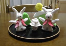 月2回の粘土教室で作った作品です 9月の十五夜お月様意識した作品です お供えの団子が多すぎと娘に言われました 息子も粘土教室に行き…団子は二人で丸めました~!! だから…多くなりました…。