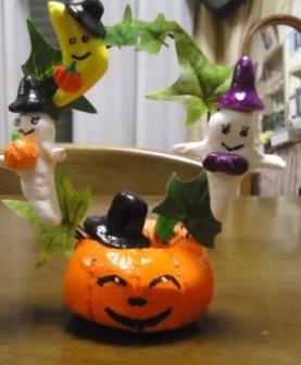 お久しぶりです…。 ようやくブログの方…再開しました 運動会も終って…秋も深まり…朝晩…寒くなりましたね…。 もうすぐハロウィン 下の息子も友達のお母さんが講師をしている英会話教室のハロウィンに誘われています!! 仮装に今…頭を悩ませているところです。 私の習っている粘土教室でもハロウィンの置物を作成。