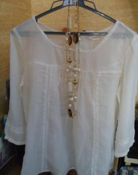 何処の店もバーゲンシーズン!! 久しぶりに 「しまむら」に 行きました~ 広告の品で娘用にと290円の Tシャツを2枚購入。 私用には欲しいなあ~思っていた…白いブラウスを500円で購入。 インナーは持ち合わせの白のシャツを着て…アクセントにネックレスを970円購入。 これが500円のブラウスです♪ まだ袖を通してないですが…着るのが楽しみな服です 後、下の子のズボンとか…娘の室内着を購入しましたが…合計金額は 3000円ちょっとでした!! さすがは「しまむら」!!! いい買い物をしました~^0^/