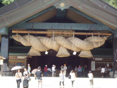 10日11日と家族4人で旅行に行きましたぁ~ 行き先は出雲大社~皆生温泉~境港(水木しげるロード) しめ縄の太さに4人して しめ縄に向かい小銭を投げ入れ、縄の隙間に入れるとご利益あるみたいです子供二人して5円玉を投げ入れていました…。 現在…修復作業されているので、肝心な場所は見ることが出来ませんでした 幸魂奇魂 即ち、ムスビのみたま 大国主大神さま 出雲大社が縁結びの神社と言われる源らしいです…。 因幡の白兎…。 因幡の白兎神話の謎 楽天ブックス