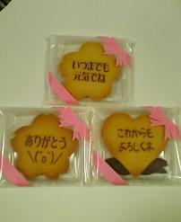 今日は仕事がお休み。なので北千住まで行ってきました~。なぜに北千住かと言うと・・・私が結婚する前に働いていたお店が今月いっぱいで閉店することになったらしく、そのお店の人から10月の終わりに「もし来られたら遊びにきて下さい」とメールをもらったから都合のいい時間を聞いた所、午後がいいと言うのでまずは北千住を通り越して上野へ。駅の中、アメ横近辺をブラブラして時間を潰す別に上野には行かなくてもよかった気もするけど、久しぶりに行きたくなったもので・・・^_^;その後、北千住に行き「今から行きま~す」と電話したはいいが、お土産を何にするかで20分位悩み、丸井のお菓子売り場の中を何回も行ったり来たり・・・・。店の人も「この人、さっきからいる・・・」と不思議に思った事でしょう・・・・そんなこんなで、お店に到着~。お土産を渡したら「あら~、そんなわざわざ買ってこなくていいのに~。手ぶらで着てくれてよかったのに~」と言われたけど、久しぶりに行く所でいい大人が手ぶらってわけにはいきませんよね・・・^_^;お店の人達に買っていったのに、「あなたも食べていきなさいよ~」と言われ、食べてきちゃいましたけどね・・・むこうは仕事しながらでしたが、色々と話が出来て楽しかった~。途中、店長さんが仕事中に「おなかすいたからセブンイレブンでなんか買ってくるわ!」と言って買い物に行ったりして、「自由でいいなぁ~」と思っちゃいました。聞く所によると、毎回こんな感じらしいです・・・。二人とも食欲旺盛なのも元気なのも変わってなくて安心しました(^.^)結局、2時から5時まで3時間も長居をしちゃいました・・・。夕方、ちょっとお客さんが多くなったりしたので、少し働いたりもしてきましたよ帰る時、お土産にクッキーを頂きました。それがこれ↓ 3枚だけなんだけど、こうゆう言葉が書いてあるとなんか嬉しいですよね食べるのがもったいないです・・。東京は人が多いし行くだけで疲れるけど、今日は行ってよかったわ~(^.^)いい気分転換になりました