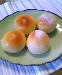 いろんな人のブログを見て、なぜか急にパンを作りたくなった私・・・。でも、面倒な事は嫌だし~と思って本屋に行ったら、「こねない!35分から出来る!電子レンジで30秒発酵」といった簡単に出来そうな本をみつけたので、また作ってみました~(^.^)でも、実際は私の要領が悪かったのか、1時間半位かかりましたけど・・・それで、出来上がったパンはこちら。丸プチパンです(^.^)全部で6個焼いたんですが、そのうちの2個、中にほんの少しだけダマ?生焼け?の物があってちょっとうまくいかなかったけど、その他は、まぁまぁうまくできました(*^_^*)一部、生焼けのあったパンはブルーべりージャムをつけてごまかして食べちゃいました~う~ん、やっぱり焼きたてはおいしい~(^^♪ネットで見ると、この方法で作ったパンは「おいしい」と言う人と「まずい」と言う人がいて色々ですが、味覚は人それぞれだし、パン作り初心者にはこの方法はいいと思います(*^_^*)前にもこの方法で作ったんですが、その時はパンが冷めたと同時に固くなって、次の日にはカチカチになってしまったんですが、今回のは次の日になっても、柔らかかった~。粉を変えてみたからかなぁ~。粉によって違うんですね~。でも・・・なんで、うまく焼けないのかなぁ・・・。粉はふるってみたし、生地はちょっとこねてみたし・・・。発酵不足??このパンを作った事のある方、うまくいく方法を教えてください・・^_^;あっ・・・でも、一番の原因は、はかりで粉とかを正確に量ってないからかなぁ・・・。家には、はかりがないので計量カップの「小麦粉」と書いてある所にあわせて粉を量っているもので・・・(゜o゜)やっぱり、お菓子、パンの基本である計量は、量りを使って正確にやらないとダメですよね・・・^_^;しばらくはこの方法で作って、慣れたら「手捏ね」で作ってみたいなぁ~(^^♪