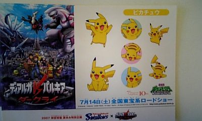 お久しぶりでございます・・・日記・・・書こう書こうと思いながら、いざ書こうとすると面倒になり気がつけば、3ヶ月もそのまま放置・・・まぁ、私の日記を待ってる人は誰もいないので別にいいんですけどね~ 先週の話になりますが・・・神宮球場に野球を見に行ってきました。私は別に野球観戦が好きな訳ではない・・・。なぜ行ったかと言うと・・・ 「夏休みは神宮球場でスワローズの試合を観戦して特製ポケモンステッカーをもらおう!」といったイベント?やってたから専用のシートがあって、1試合につき来場記念スタンプを1個押してもらい、来場記念スタンプの個数(最大3個)ごとに神宮でしか手に入らないオリジナルステッカーがもらえるらしく、1回目の来場でもらえるステッカーが、なんとピカチュウこれが欲しいから行ったようなものです・・・。でも、このステッカーがもらえる対象年齢って「4歳以上12歳以下」まで・・・。うちは子どもはいないから、明らかにもらえない・・・。まぁ、最初からもらえないってわかってて行ってみたんですけどね~。もらえなくても、たまには野球観戦もいいかな?と思って諦めてたんです。そしたら主人が「子どもじゃないとダメなのか聞いてみようか??」って言い出して・・・。私は「たぶんダメだろうから聞きにいかなくていいよ」って言ったんだけど、うちの主人、お酒飲んでで酔った勢いもあり聞きに行ってしまいました・・・私はちょっと恥ずかしかったので、遠くに離れていたんですが、チラッと見てみるとなんだか、もらえた様子・・・主人も「もらえた!」と笑いながら戻ってきたので、私も大喜びなんていったか聞いて見ると・・・ 主人 「これ、こどもじゃないともらえないんですか??」 係の人 「はい」 主人 「でもうちの嫁がピカチュウすきなんですよ~。だから下さい!! お願いします!」 係りの人はかなり困ってたらしいが、「じゃあ、そうゆう事なら・・・」と言ってくれたらしい・・・。いやぁ~、言ってみるもんですね もらったステッカーがこれ↓ しかも、二人分のチケットを見せてスタンプを押してもらったので、2枚分くれました~。主人に「酒入ってたから言えたんでしょ?飲んでなかったら言ってなかったでしょ?」と聞くと、「飲んでなくても聞いてあげたよ」との事・・・。でも、その後、何かにつけて恩をきせられましたけどね・・・このピカチュウステッカー、きちんと飾っておきました~。私のピカチュウ好きはいつまで続くのやら・・・
