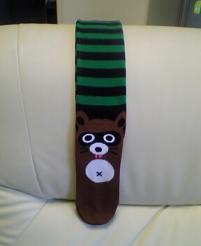 と言っても靴下ですけど・・・^_^;5本指靴下とか(今ではすっかりお馴染みですが・・)足袋靴下など靴下に関しては、変なのが好きでついつい買ってしまいます・・。とゆうわけで、この前買ったのがこれたぬきです(^・^)でも私が気に入ったのはこの靴下の裏!たぬきのしっぽが書いてあるんです~。なんかよくないですか?(そう思うのは私だけか・・)このしっぽに一目ぼれしてついつい買ってしまいました(^^♪でもこの靴下、履くとたぬきの顔が変な位置にくるのでなんか微妙なんですけどね・・・。ダンナに見せたら「こんな変な靴下、買ってくるってのがおかしい!」と冷たく言われてしまいました・・・(>_