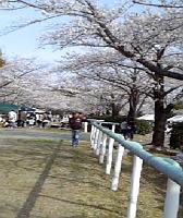 昨日は「愛馬の日」に行ってきました。とは言っても、何の事だかわからないですよね・・・主人の働いている競走馬のトレーニングセンター(略してトレセン)では、毎年、このトレセンを一般の人に開放してイベントをするんです。通常、トレセンは誰でも入れるわけではなく、関係者、それか通行証を持っている人でないと入れません。私は「家族通行証」をもっているので、いつでも自由に出入りできますけどねこのイベントがある2日間だけは、通行証がない人でも出入りでき中に入れると言う事もあってか、遠くから来る人も多いみたいです。他県のナンバーを結構、見かけます。それと、昨日は天気もよかったので、近くの人やお子さんのいる人などは散歩がてら、の~んびり歩いて来る人もいましたよ。でも、中に入れると言っても乗馬をする所だけを開放するだけで、「愛馬の日」と言えど、さすがに競走馬がたくさんいる厩舎地区には入れませんけどね・・・。桜もまだ咲いていてくれて、キレイでしたよ中はこんな感じ↓ 今年は桜が散りはじめてはいるものの、なんとかもってくれたのでキレイでよかったです。2年前に行った時は、まだ桜が咲く前で、ただの枝だけでしたから!毎年、桜が見ごろの時を狙って、日程をきめてるのだとは思いますが、こればっかりはねぇ・・・。中ではフリーマーケットがあったり、露天?みたいなのも出てたりしているので、みんな食べたり桜の下で飲んで宴会をしてる人などもいてそれぞれがの~んびりと過ごしていましたよ~。まぁ、宴会してる人達はだいたいがトレセンの人達でしょうけどね・・・。主人も中に入ったとたんに「見た事のある人達ばっかり・・・」って言ってました・・・^_^;イベントの内容も、馬が障害を飛んだり、演技?をしたり、装蹄の実演、ポニーの競馬、乗馬体験が出来るなど色々とありまして、特に乗馬は子ども達には人気だったようです明日はこの場所で、パートのおばちゃん達と遅い花見~今日みたいに急に雨が降らなければいいけど・・・。