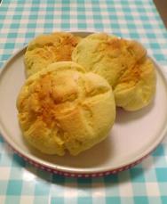 最近、何か作った事しか書いてないような気が・・・。まぁ、いいっか~(^^♪ これといってネタもないし~。とゆうわけで、また作りましたよ~(^.^)今回のパンはメロンパンです~。出来上がりはこちら↓でも、ちょっと焼きすぎ?もうちょっと焼き上がりが白いほうがよかったなぁ・・それに、網目をくっきりと出したかったんだけど、2次発酵してる時に下のパン生地が膨らんで、だんだんクッキー生地が割れてきちゃって・・・どうしようかと思ったけど、なんとか形になったのでよかったです。見た目はイマイチだけど、味は・・まぁまぁ、おいしかったですよ~(^.^)最近、本当にパンとか作るのが楽しい~(^^♪この飽きっぽい私が、こんな面倒な事を楽しいなんて言うのは珍しい事!果たして、いつまで続くかが問題だけど・・・^_^;今度は何作ろうかな~(^^♪