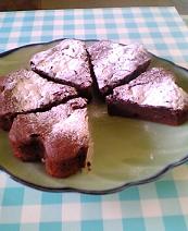 ガトーショコラです~。ちょっと、粉糖かけすぎて真っ白になってますが・・・^_^;作ったと言っても、「無印良品」のガトーショコラのセットを買ってきて材料を混ぜて焼いただけなので、作ったうちには入らないような気はするけど・・・(>_