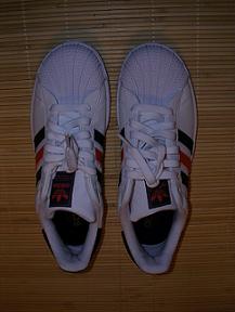 今月も中旬になるというのに、気がついたら全然日記を書いてなかった私です・・・。まぁ、それはさておき、この前の日曜に水戸のイオンに行ってきました。「わざわざ水戸まで??」と思う人もいるでしょう・・・。最近、新しくオープンしたらしく、「今度行ってみよう」って事になり高速代をかけて行ってきましたよ~。オープンしたばかりで日曜って事もあり、すごい人・・・。人ごみがあまり好きではない私は、中に入った瞬間、どっと疲れてしまいました・・・^_^;どうしても欲しい物があって行ったわけではないので、とりあえず各階、端から端まで見て行く事に・・・。順番に見ていき、買った物はこれ。スニーカーです。よく分からないと思いますがアディダスです。スニーカーは買うつまりはなかったんですが、主人に「今履いてるやつ、汚いから買えば?」と言われたので・・・(>_