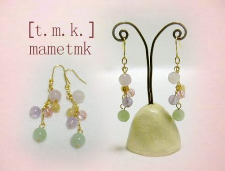 楽天フリマに出品中です~朝から雨です。でも妙にあたたかい・・・午後からは、時々突風が吹いています。今日は、待ち遠しい春を思いながら優しい色の天然石を集めてピアスを作りましたよ。先日買ったラベンダーアメジスト。今年のラッキーカラーっていうから~「藤雲石」とも呼ばれており、白い靄がたちこめているように見えます。お数珠にも使われている石なんだそうです。この石をベースに色合わせをしました。今日みたいに慌てて暖かくならなくていいからゆっくり、春が来るといいな~雪が積もっているところは大丈夫かしら?災害など起きませんよう