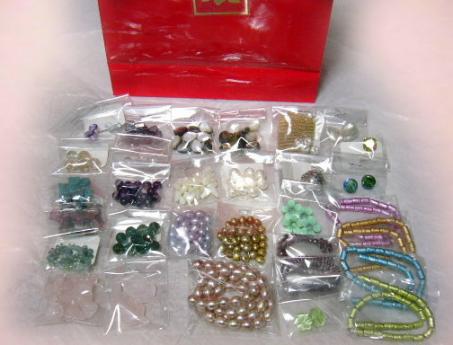 お待ちしておりました~~っようこそ、福袋ーッ!こちらはア・スマートさんの福袋です。こちらの福袋、今回初めて買ってみましたの。私にしては、どーーん!と奮発して¥5,000の福袋にチャレンジしましたー「天然石が多めに入っています」と書いてあったので、どんな石がやってくるのか楽しみでした♪わぉ☆素敵~~っ!特に、ピンクの淡水パールはとてもつやがよくて綺麗♪天然石はどれも使いやすそうなタイプだし、気になっていたグリーン系の石も入っていて嬉しいわん☆満足な福袋でした♪来年もチャレンジしてみよう☆