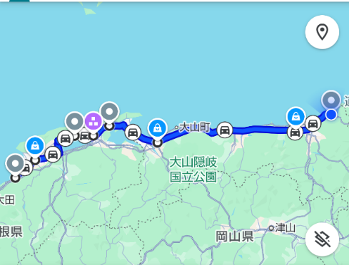 出雲市多伎町~出雲市園町~松江市岡本町~松江市殿町~鳥取市吉岡温泉町~岩美郡岩見町