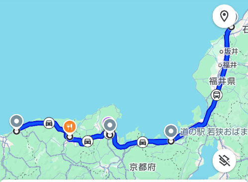 福井県小浜IC(舞鶴若狭自動車道)~(北陸自動車道)石川県尼御前SA