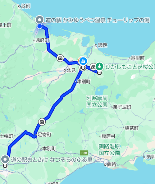 走行距離:253km 車中泊先「道の駅かみゆうべつ温泉」