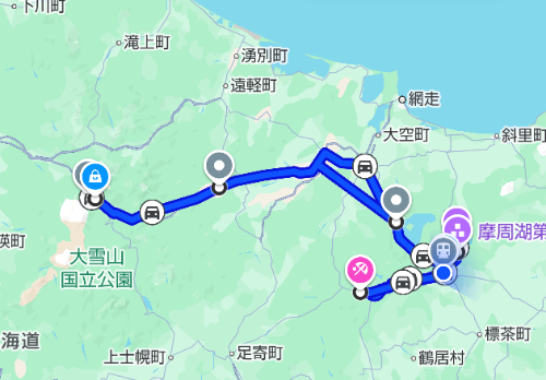 層雲峡~北見市~美幌町~弟子屈町~阿寒町~弟子屈町湯の島