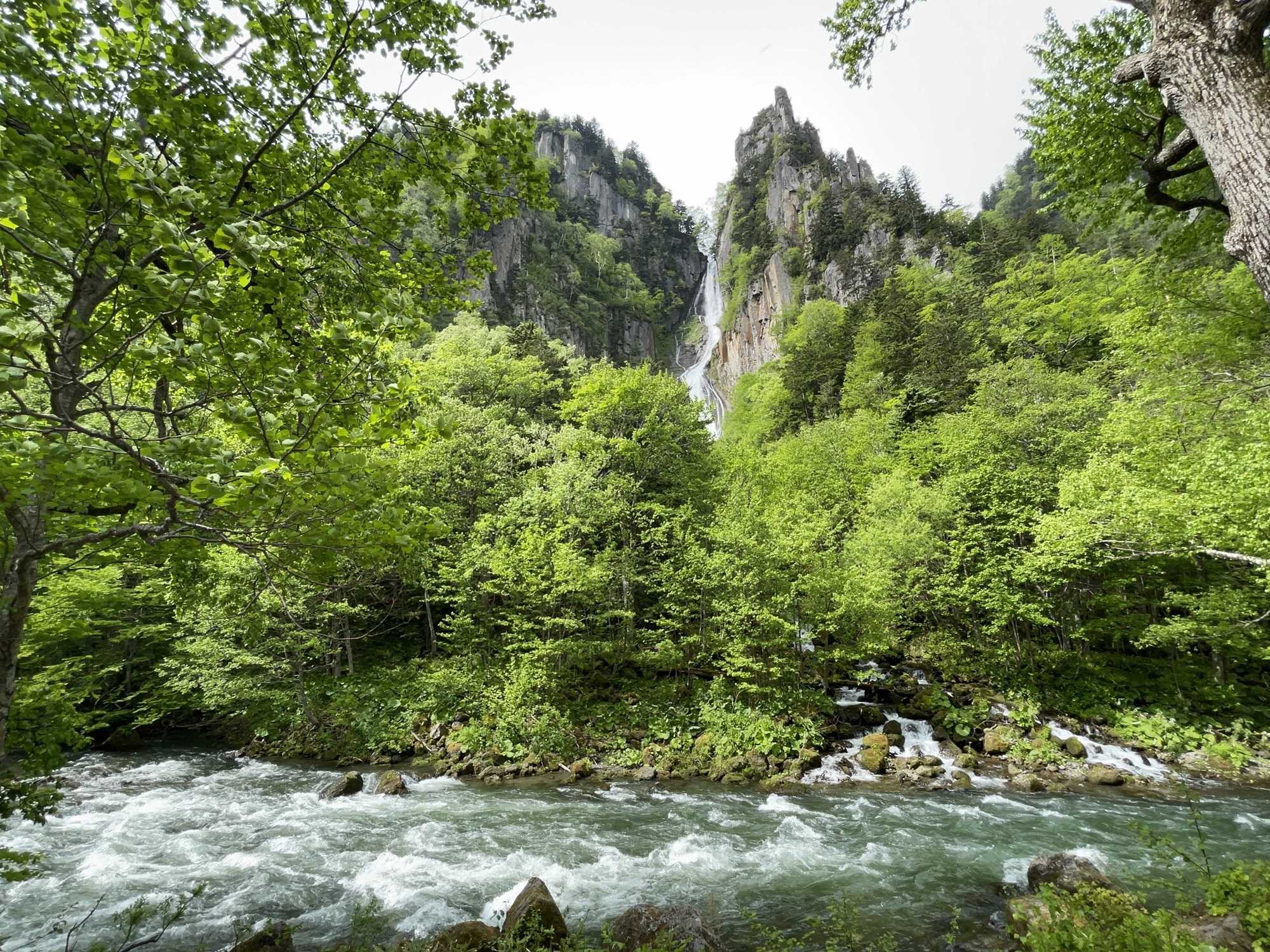 層雲峡温泉街から車で10分ほどの場所にある『銀河・流星の滝』へ