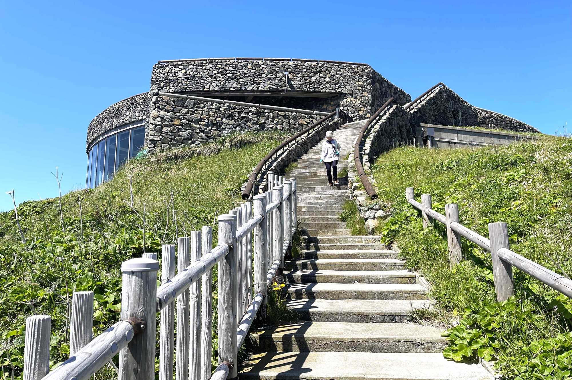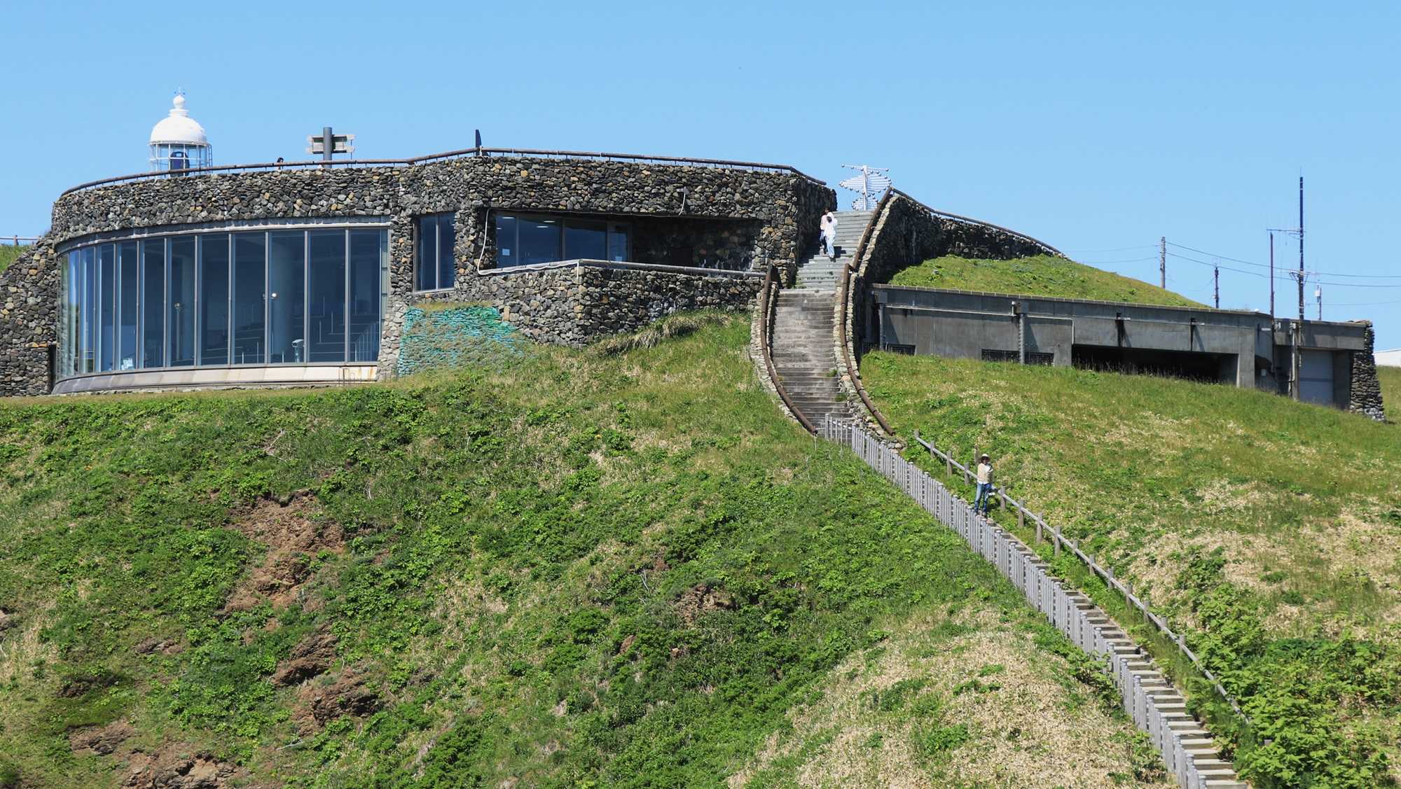 振り返り見る「灯台」と「風の館」