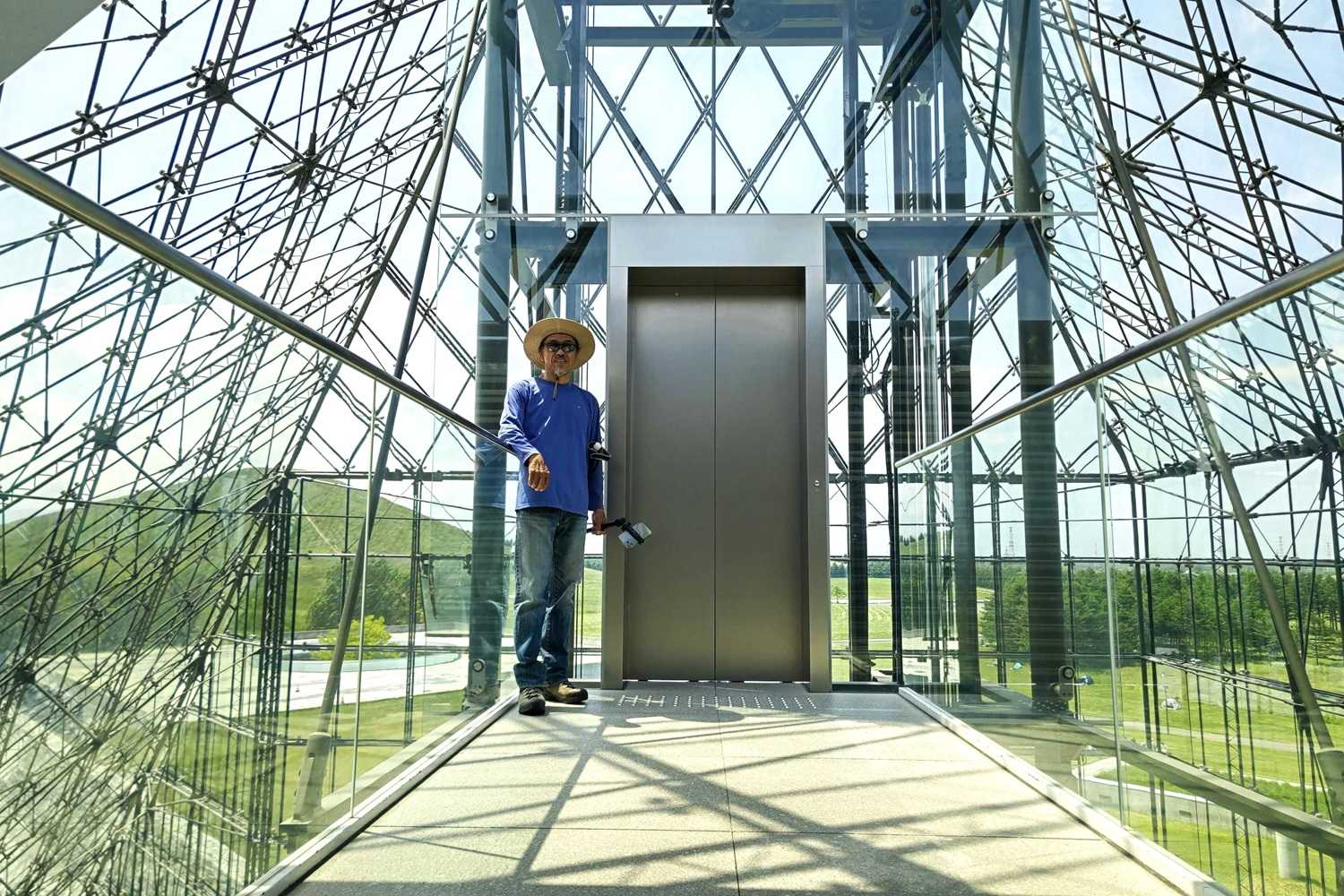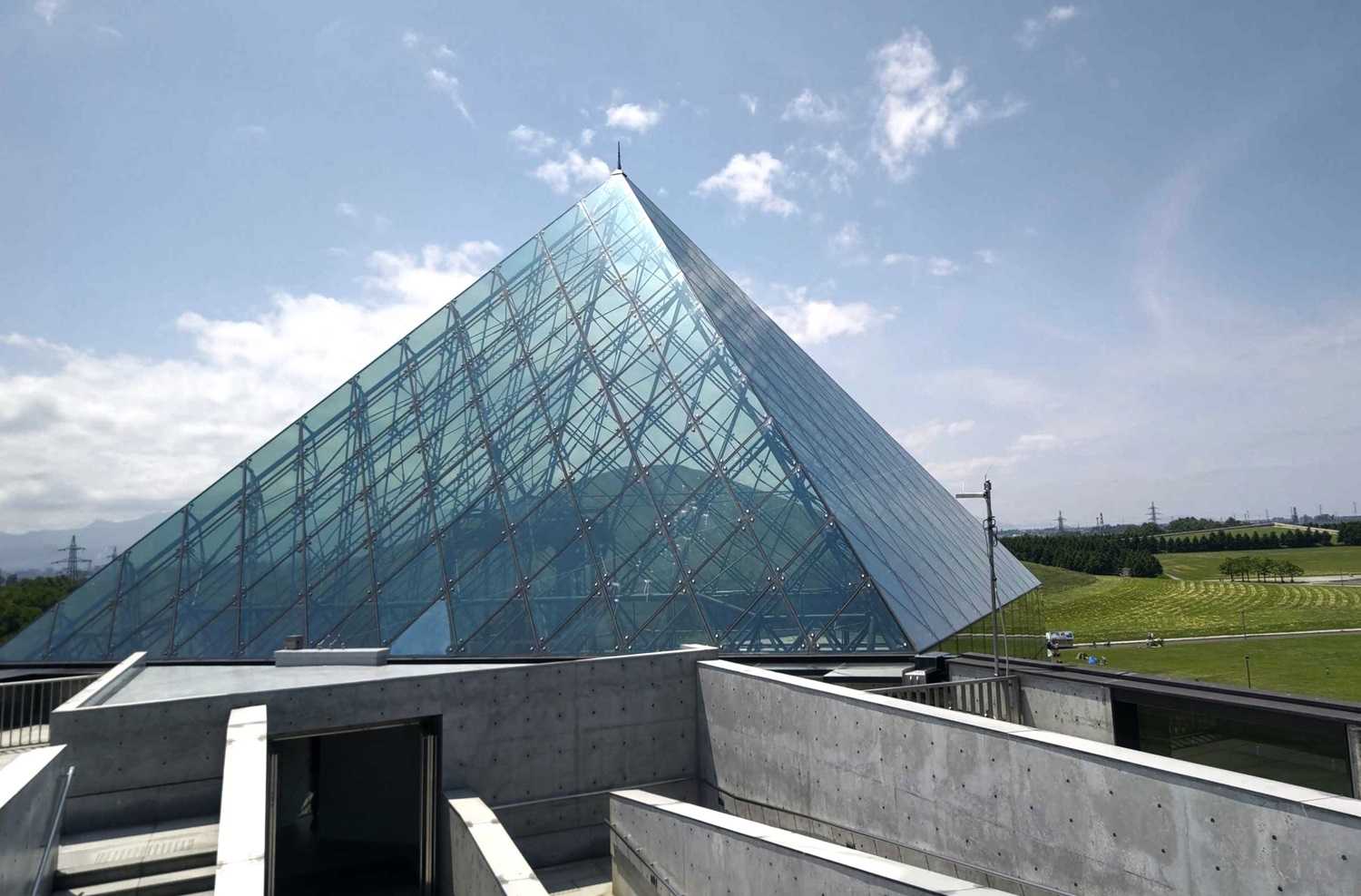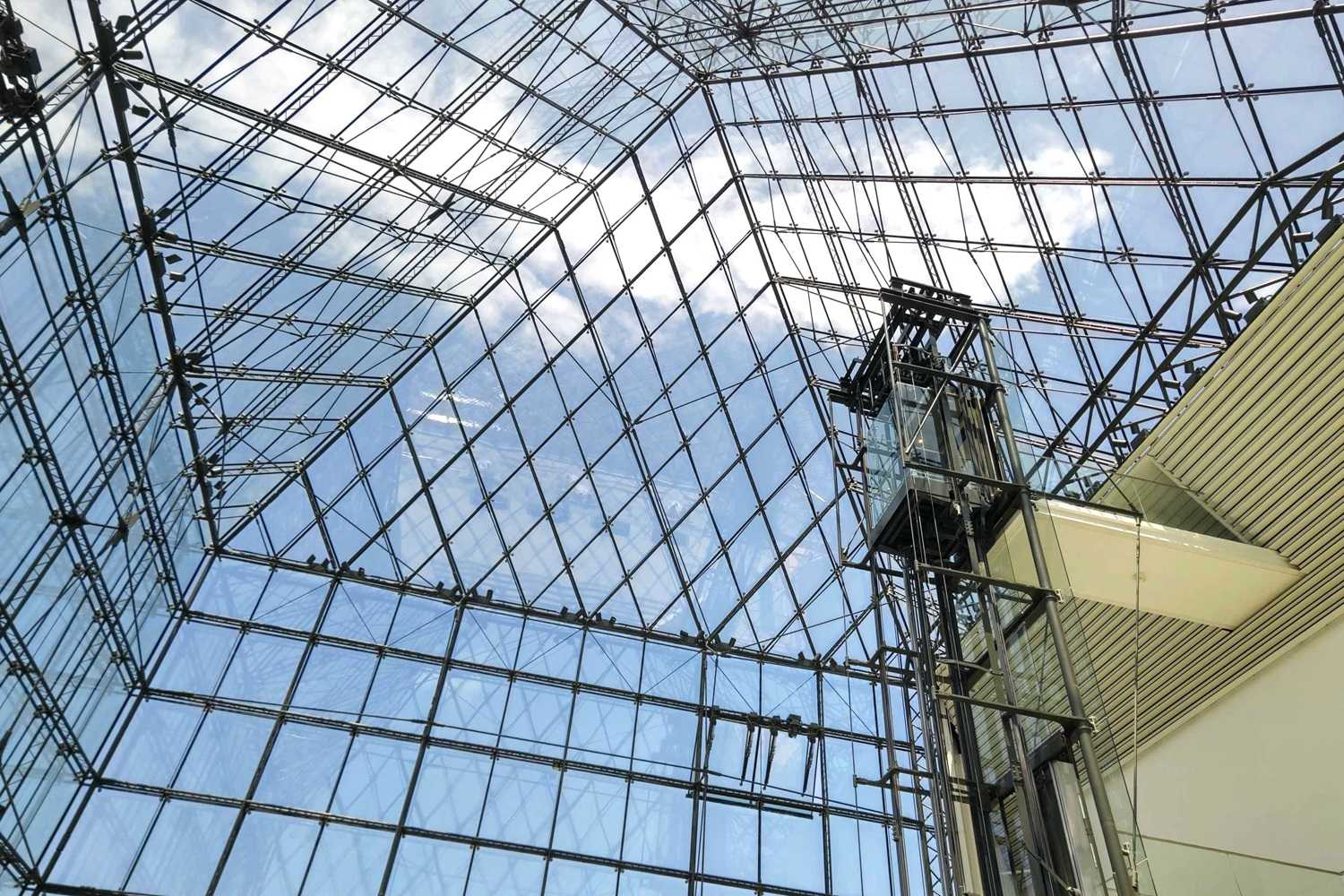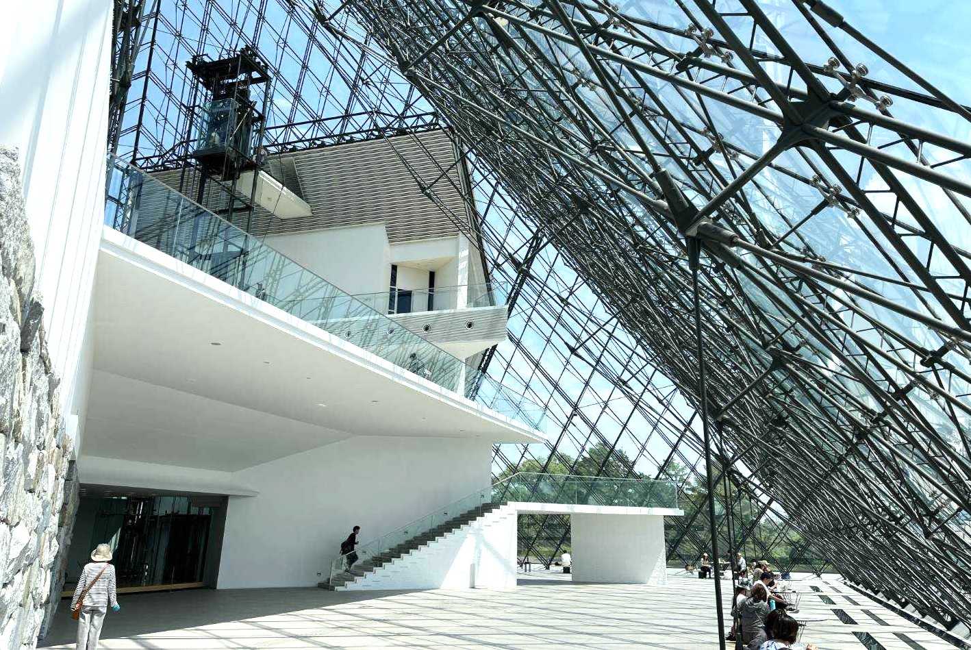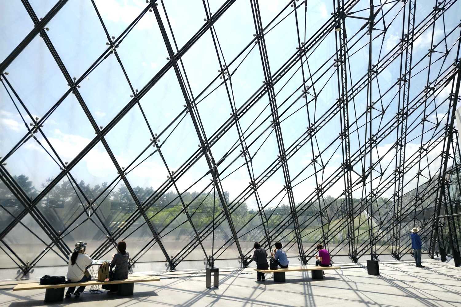 空の青と一体となるガラスの組み合わせがとても綺麗だった