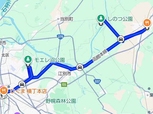 新篠津村~岩見沢市~札幌市東区~札幌市中央区