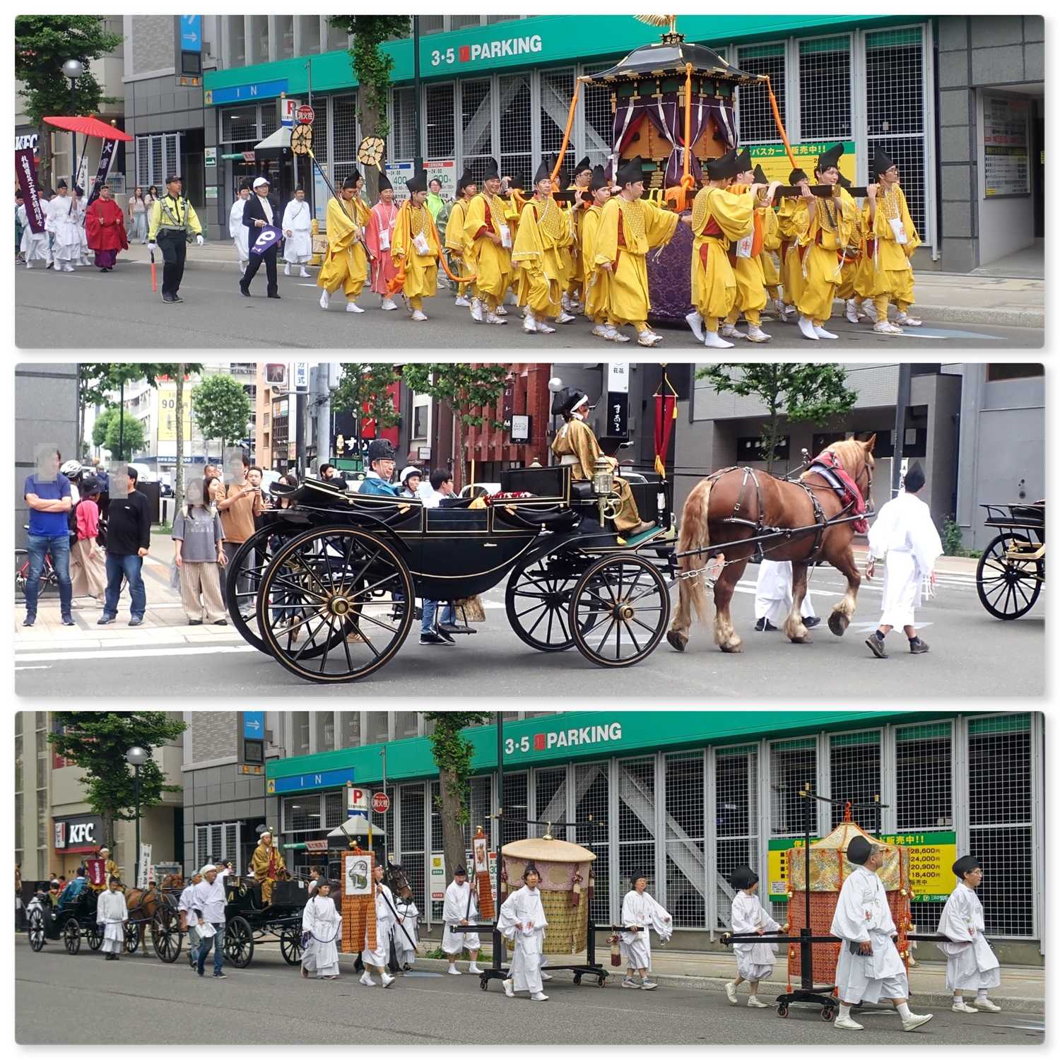 みこしや山車の行列が札幌市内の中心部を練り歩く伝統の『神輿渡御』が行われていた