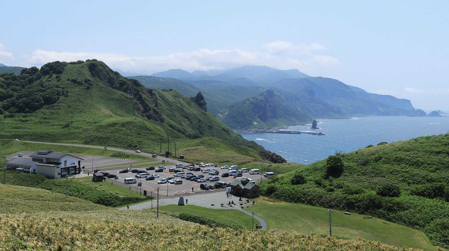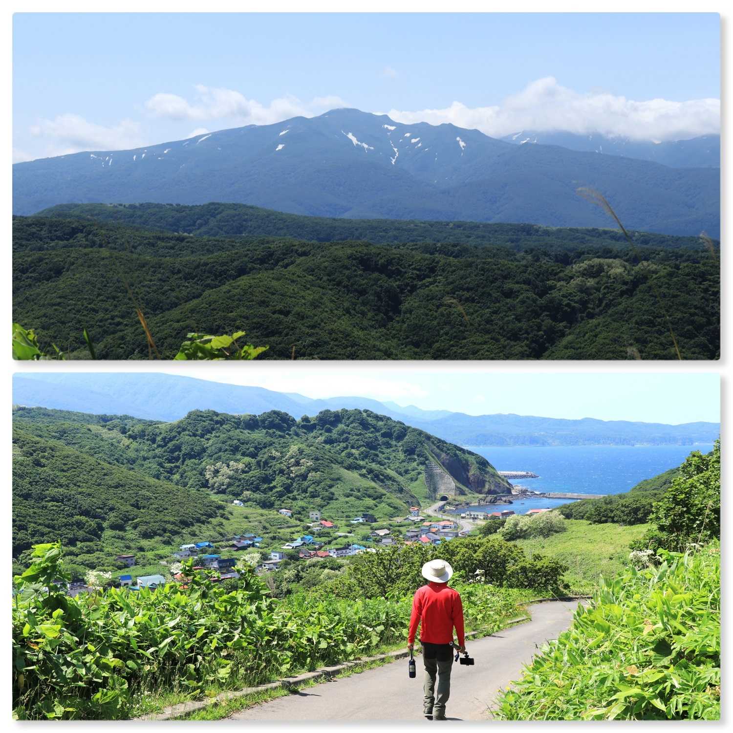 積丹岳?と集落を眺めながら駐車場へ向かっていると