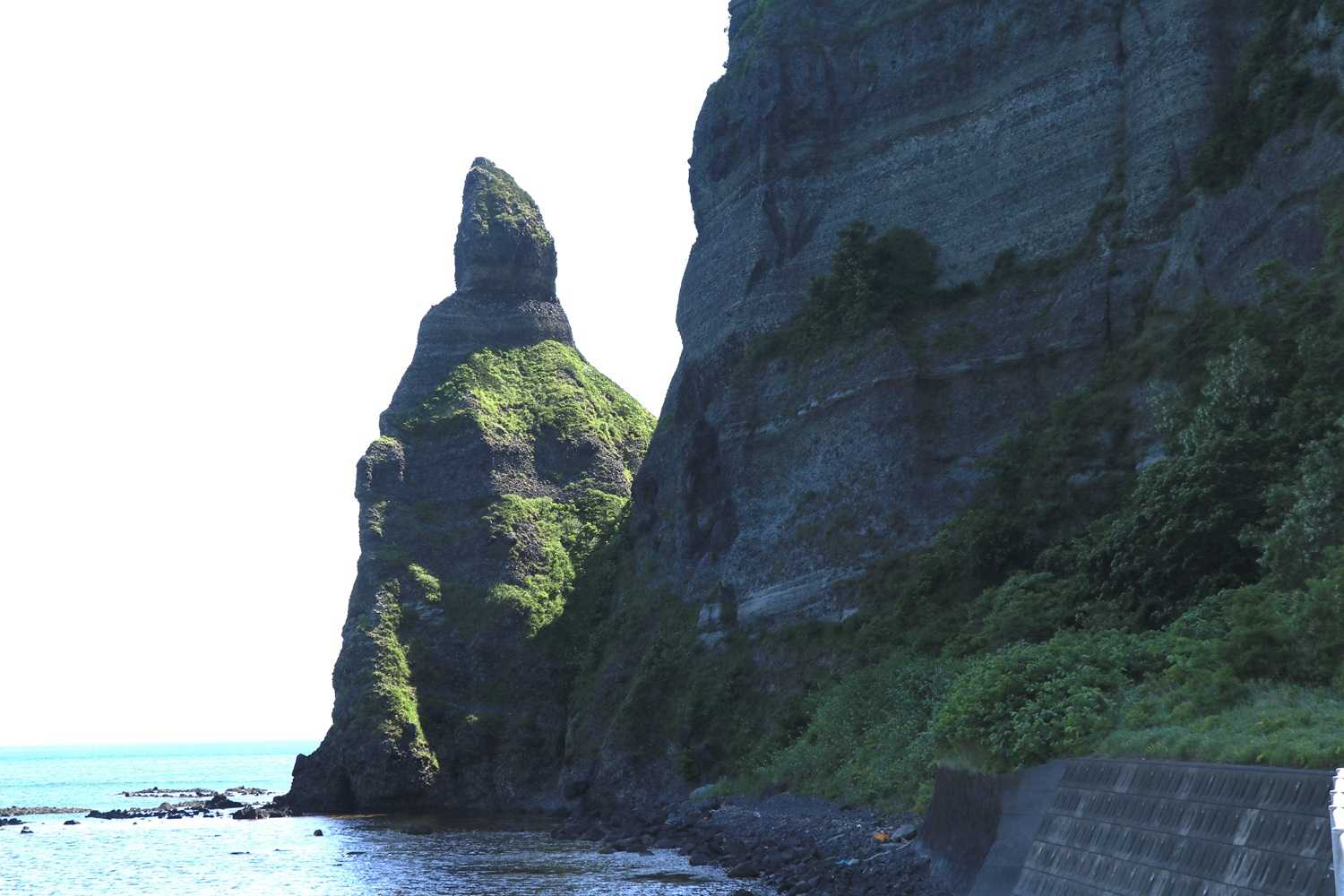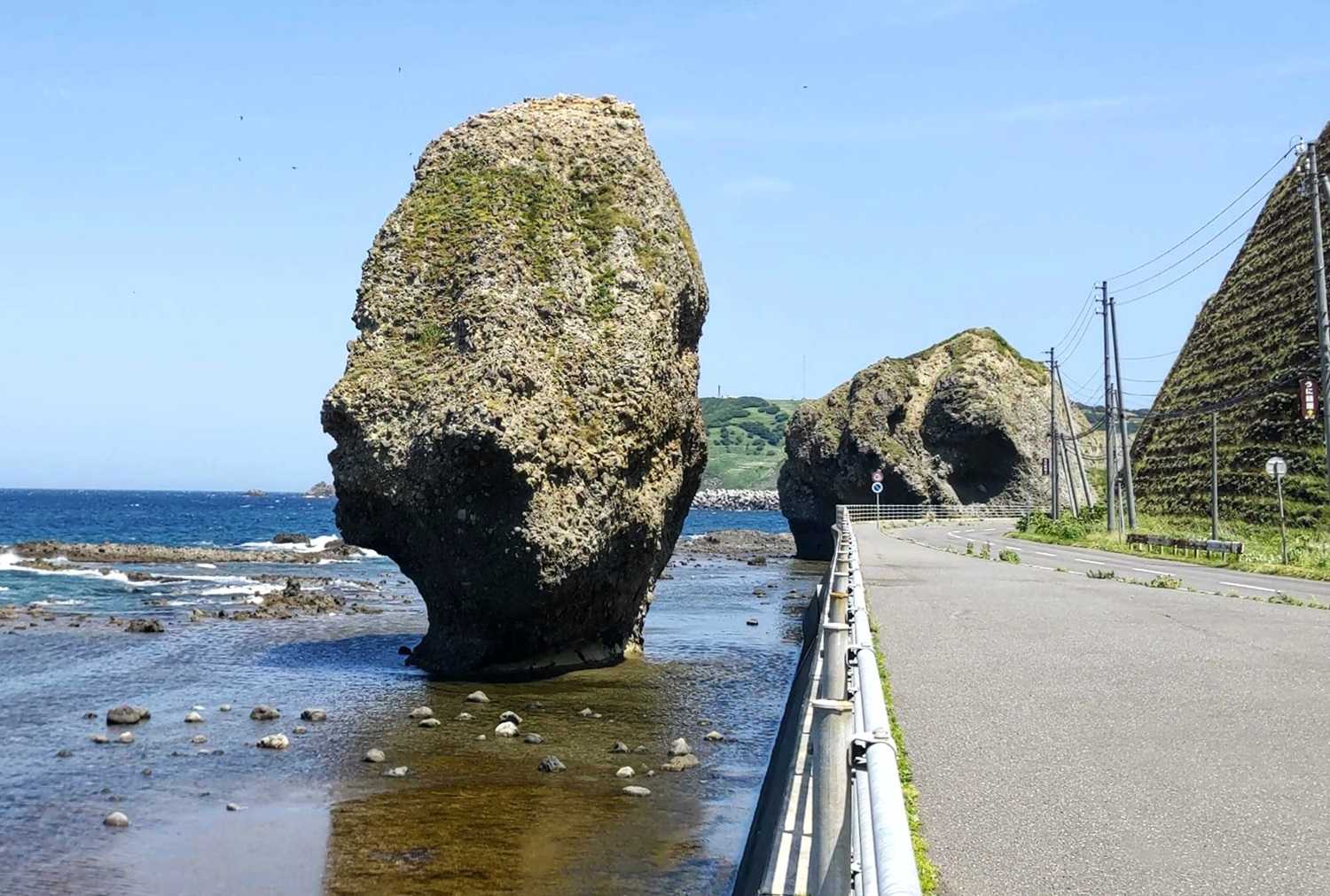 神威岬へ向かう道すがらには独特の奇岩が多かった