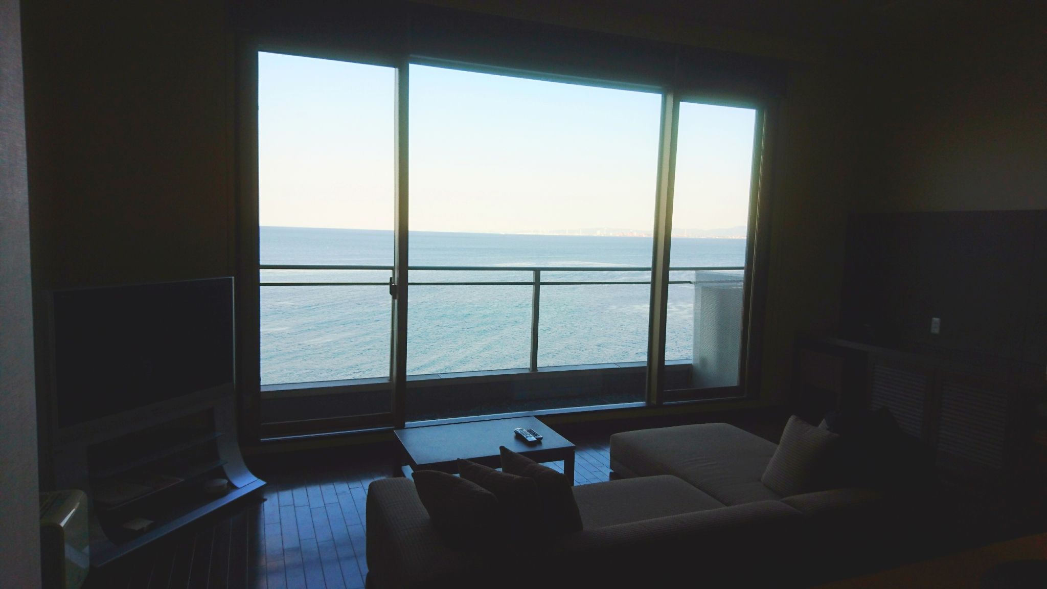 部屋に入ると窓の外には綺麗なオーシャンビューが広がっていました