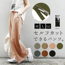 カーキを悩み中( *´艸`)クーポン利用で1690円●メール便送料無料●セルフカットプリーツワイドパンツ【10】【M】【L】【LL】レディース 春夏秋冬 ボトムス パンツ ダークグレージュ ブラック ブルーグレー カーキ ピンクベージュ ベージュ ブラウン セルフカット カットオフ フリーカット 裾カット