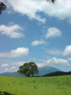 岩手山と一本桜、青い空がなんてきれいなこと。