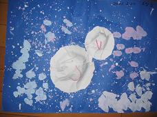 今週は毎日まなると一緒におでかけしてて疲れてしまい、まなると一緒に10時に撃沈してしまいました。だから朝の更新。それにしてもこんなに早く寝てしまったのは久々。いっつも寝るのは2時くらいなので・・・さて、おでかけというか託児所での様子ですが・・・11時半から1時半まであずけてそこから1時間絵の教室の体験を予約してたのですが、お昼をはさむので朝からお弁当にサンドウィッチを作りました。そして11時すぎくらいにうちを出ました。小雨だったのですが時間がないのでおんぶ紐でおぶってチャリででかけました。(いい加減ママチャリも購入せねば・・・)11時半くらいに到着。まなると必要なものを渡してすぐに消えました。中からはまなるが泣いている声。あぁ~つらいなぁと思いつつその場を去りました。雨が強くなってきたのでお迎えはに変更。というわけで2時間あずけても私の時間は50分くらい。洗濯物を干してお風呂掃除してお昼ご飯を食べて片付けに手をかけたくらいでもうでかけなければなりませんでした。まなるがいないとジャマが入らないので仕事はやりやすい。まなるはずっと泣いてるのかなぁと思いつつ託児所へ向かいました。託児所へつくとまなるが笑顔でよってきました。意外とフツーに遊んでました。親が心配するほど子どもは弱くはないようです。つらいのはママとはなれる一瞬だけなのかなぁ。先生の話によるとはじめ泣いてたけど絵本読んだり遊んだりしてると突然泣き止んでそれからはマイペースで過ごしたようでした。レゴとままごとがお気に入りだったみたいです。ただ、私の予想通りお弁当はほとんど食べてませんでしたが・・・私が合流してからの体験レッスンですが、子ども5人くらいと先生と他に体験に来てたママで模造紙2枚の大きさの用紙に桜の木を書きました。はじめにスポンジで空の青を塗り、その後スポンジで木の幹と枝を書きました。次に手のひらをつかっていろんな濃さのピンクで桜を満開にしました。その後筆でピンク色の中に黄色のしずくをところどころ散らしました。手順はこんな感じです。桜の花を描くときお皿にたくさん入った絵の具に直接手を入れて描いてたのですがそれがすごく楽しいらしくまなるはかなり興奮してました私は絵の具のついた手をズボンで拭くまなるにぎゃあと思ってたのですが途中で開き直りました。おうちではこんなダイナミックなことはできないし、コップやお皿に手を入れるとしかられるのにそこでは褒められるのですからかなり楽しかったと思います。終わったときは手も足もズボンも上着も顔までピンクの絵の具だらけでした。一応お着替えを用意しておいてよかったです。おうちに帰って洋服の絵の具を落とすのは大変でしたがまなるのあんな楽しそうな顔が見れて幸せでした帰りは抱っこ紐で帰りましたが、泣いたりはしゃいだりして疲れたのか途中でぐっすり。とりあえずほっとしつつ重いまなるをかかえて帰りました。