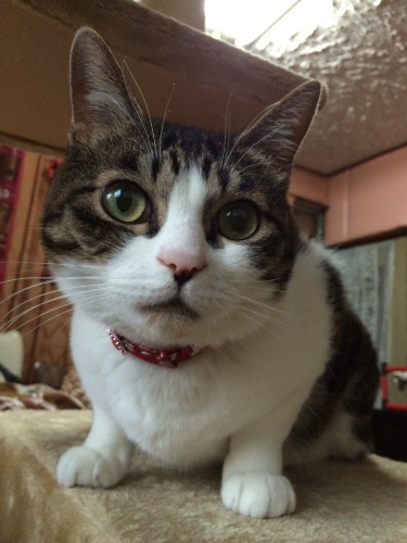 すでに4日目になり、前からいたかのように寛ぐ(楽)ちゃんあ、おばしゃん#ばぁ~#キャットタワーの穴から顔出したまままどろんでましたこちらはキャットタワーの穴からモックへ降りた二葉ちゃんこのモック、初めて使われましたヽ(^o^)丿あぁ、そうそう怪盗楽朝起きたらケージの中から「カリ、ポリ」??なんじゃ?なんと楽ちゃんが食器棚の下に置いておいたご飯を2.5mほど引きずってきた模様どこまでミラクルなの?ラックもしたことないのになーたがやっていたのを思い出しました#あたちのこと?じゃ、お名前ミラクルにしましゅか?#ほんとミラクルよ~ラっちゃんのご飯を横取りできる子なんてなかなかいないわよ$あたちにはできないでしゅよ。ラっちゃん、あたちにはシャーって言うでしゅよ$いや。今日みんなでグルグル回転ご飯するとこみましたよラックにとられないようにお皿の位置を移動したりしてますが楽ちゃんが大人用ご飯に食いつきます^^;こんな風に移動。楽ちゃんの食べ終わったお皿に二葉ちゃん用を足しました楽ちゃんがラックのお皿で食べてます二葉ちゃんもやる時はやる子なのねうちはなんでも好きにしてもいいからね二葉ちゃんのやりたいように過ごしてね私は朝食にこちら寒天蜂蜜はスコーンにつけても流れ落ちないので食べやすいです人気みたいです。