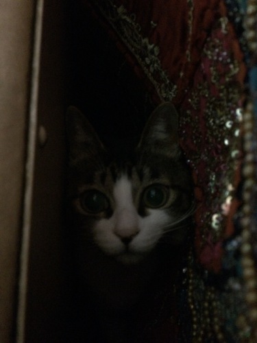さて、勿体ぶったような予告の事件ですが11時に最後のご飯をあげて、11時半過ぎに寝ようと猫べやへ行くとあれ?なんでファスナー開いてる?ひゃ~~楽ちゃんどこぉおおおおおおおお~~~楽ちゃんが脱走してるんですこれはラックミーお得意のベッド下だな、と思って懐中電灯で見てみるとしっかりこっち向いて座ってましたなんでファスナーが開けられるんでしょう?どんな技もってるの?まぁ、無理に出しても捕まらないので入口の扉を椅子で押さえて、ベッドに入り本を読んでいましたうひひ。出てきた出てきたと、のんびり構えていたらさすがお子ちゃまお構いなしに部屋中探検始めました#二葉ちゃんこんばんはぁ~でしゅ#$楽ちゃん、あたちのことはほっといて$ご飯食べなかったので、ベッドのふちに置いたら食べてくれました初日から出し入れ快調ですw#え~と。ここは何があるでしゅかね?#「おチビさん、初日から大胆でしゅね」#この下は避難所になりそうでしゅね##ふむふむ。美人姉妹でしゅね##え、お写真撮りたいでしゅか?まるっとママと同じでしゅね##サービスでしゅよ##黒いおにいしゃん、こんばんはぁ~#「シャー、こんな時間にいきなりなんでしゅか?訪問前はアポが必要でしゅよ」#ごめんなしゃい##ここは予約席じゃないでしゅよね。#と、こんな感じで2時間くらい部屋中を探検し、その後ハッピーテールhttp://happytaillove.web.fc2.com/のFさんに頂いたボールを私が寝落ちするまで転がしていました一方、二葉ちゃんはケージでまだまだお地蔵状態でした・・・・その後・・・2日目には更なる発展が動画を載せたいので明日にしますね。うふふドsじゃないですよw