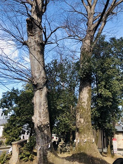 珍しい、金色のしめ縄(ビニルテープを編んでます) 立派な御神木